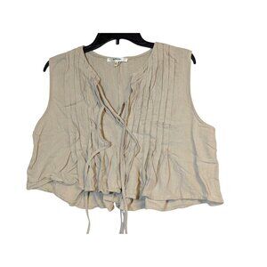 La Lavon Beige Sleeveless Pleated Crop Top With Tie Front Rayon & Linen Blend Li