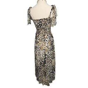 La Ligne 100% silk tie strap leopard print smocked midi dress size large L