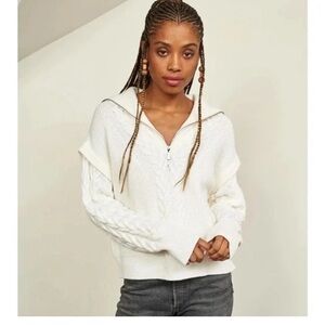 La Ligne Bastien Cable Knit Merino Wool Pullover Sweater Cream Ivory Size small