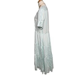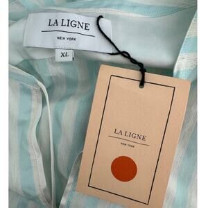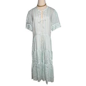 La Ligne Izzy Blue Ivory Silk Blend Tiered Striped Dress size XL extra large