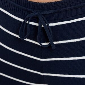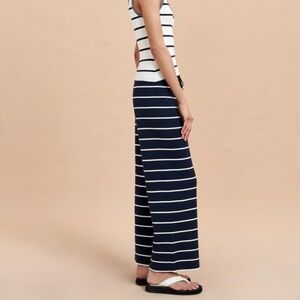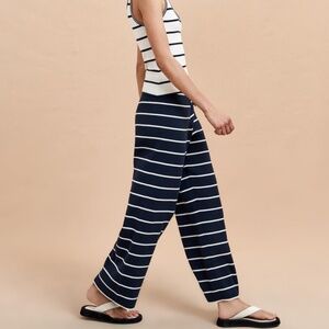 Stylish navy pants with white stripes. Comfortable fit. Perfect for casual wear.
