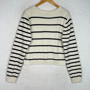La Ligne New York Cashmere Cardigan Sweater Striped Ivory Black XL Button Front