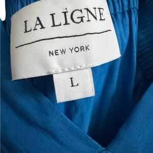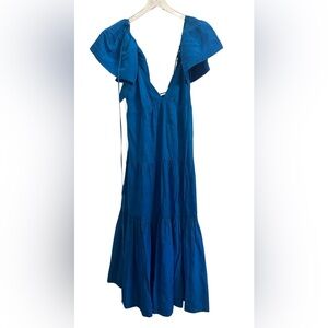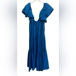 La Ligne Ruffle Shoulder Open Back Linen Blend Midi Dress - Ultramarine L B186