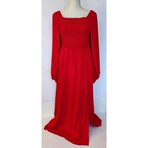 La Ligne Size XS Red Midi/Maxi Dress w/Puff Long Sleeve Smocking and Front Split