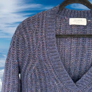 La Ligne V-Neck Alpaca Wool Sweater in Navy Blue Size Small Comfy Cozy
