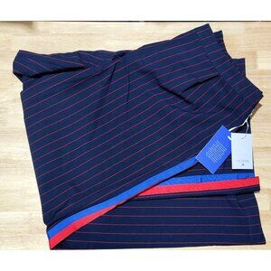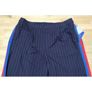 La Ligne Women's Navy Blue Elastic Back Waist Dress Pants w Red & Blue Piping