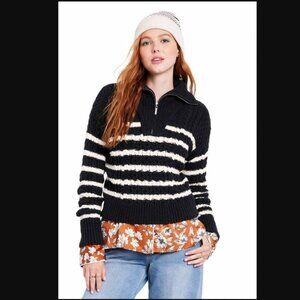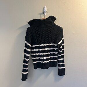 La Ligne x Target Quarter Zip Striped Cable Knit Sweater Size XXS Black White