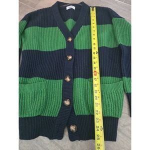 La Ligne x Target Striped Chunky Knit Cardigan Sweater Green Blue XXS Oversized