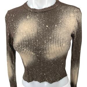 La Luxe Brown Tie Dye Galaxy Print Rib Knit Long Sleeve Crop Sweater Top Size S