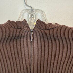La Luxe Romper Jumpsuit Brown Ribbed Long Sleeve Small