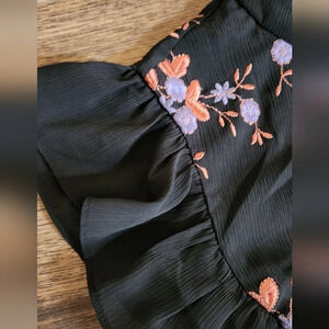 Beautiful floral embroidery, ruffled sleeves. Perfert for spring wedding or bridal shower!