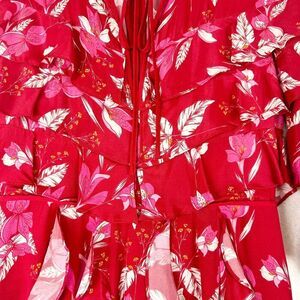 La Maison Talulah Silk Blend Long Sleeve Floral Ruffle Mini Dress Size Small Red