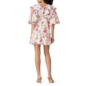 La Maison Talulah Tea Time Floral White Short Sleeve V-Neck Linen Mini Dress S