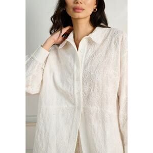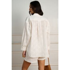 The Bianca Shirt is our interpretation of a perfect summer button down. Crafted from delicate embroidered fabric, she offers an oversized, relaxed fit with long sleeves for a more covered look. The lapel is designed in an angular way so that the top effortlessly falls open over your bottom. Featured in White Daffodil Embroidery, the Bianca Shirt brings an easy, chic flair to your wardrobe.