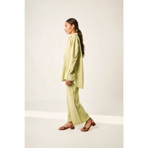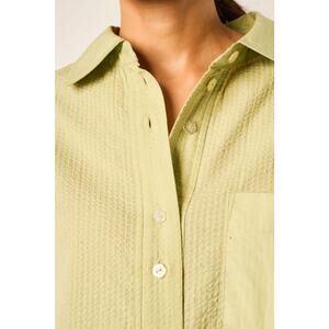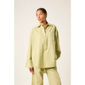 Designed in a new and incredibly soft seersucker cotton, this oversized Henley has a flowy but chic shape. With a longer back for added coverage, it gracefully drapes over the body. The unlined design keeps it light and breezy, while the delicate flower-shaped buttons add a subtle touch of sweetness. Effortless and easy to wear, the Jane Top is ideal for sun-filled days and getaways.
