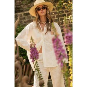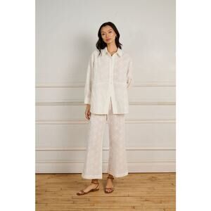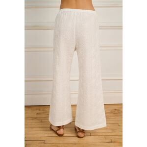 Meet the Nicole Pant in this season's White Daffodil Embroidery. Crafted in semi-sheer soft cotton poplin with an elasticized waist and subtle kick flare, she offers a perfect balance of comfort and poise. The all-over floral embroidery brings a stylish edge to this wardrobe staple, making her an instant favorite for warm-weather dressing.