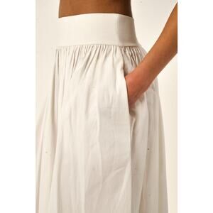 This skirt is made of 100% cotton poplin with a ponte knit waistband.