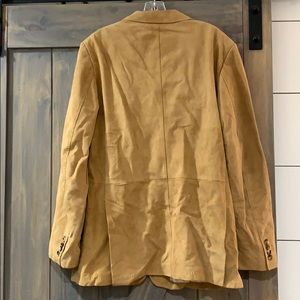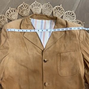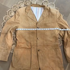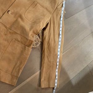 other measurements: pit to pit (chest) shoulder to shoulder seam, sleeve. leather or goat (capra)? size tag? thanks