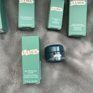 The La Mer 6 Piece Sampler Plus Brand Box features a collection of moisturizing products from the La Mer brand. The set includes a moisturizer with active ingredients like Glycolic Acid and Glycerin, designed for hydration on the face. The products are from the La Mer The Fresh Renewal Collection, with a period after opening of 12 months, making them suitable for daily skincare routines. Ideal for individuals looking to try a variety of La Mer products to improve their skin's moisture retention.