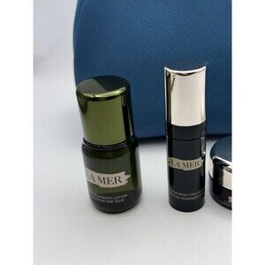 Indulge in luxury skincare with this exclusive La Mer travel set, perfect for on-the-go or as an introduction to the iconic brand. This set includes everything you need for radiant, hydrated, and youthful-looking skin, all beautifully packaged in a stylish blue pouch.