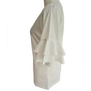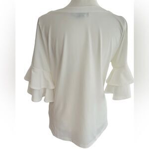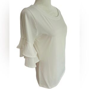La Mer Luxe white scoop neck top with double ruffle elbow length sleeves size XS