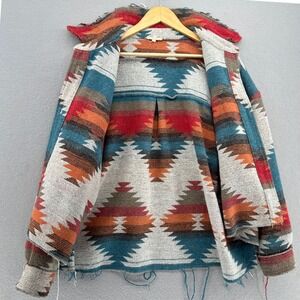 La Miel Aztec Southwestern Print Shag Frayed Jacket Button Up Shirt L Cowgirl