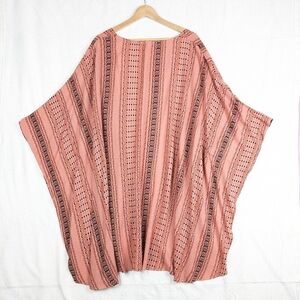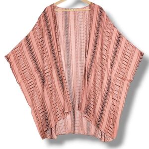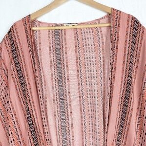 La Miel Kimono Cardigan Swim Cover-up Large Peach Pink Black Boho