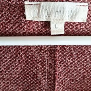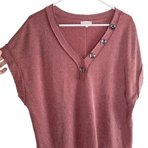La Miel Knit Short Sleeve Tee Button Detail Red Burgundy V Neck Slouchy Fit L