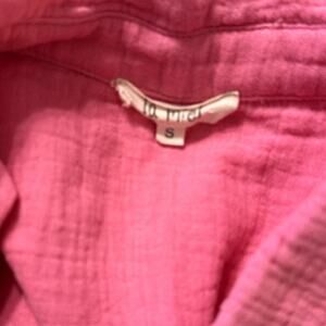 La Miel, pink shirt, crinkle fabric, button-down, women's top, size small, casual wear, stylish, fashionable, pre-owned, excellent condition, wardrobe essential.