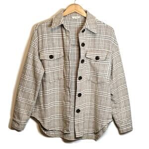 La Miel Plaid Tan Shacket Cozy Casual Fall Layering Button Down Shirt S