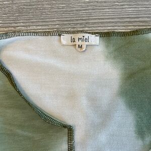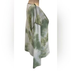 La Miel Women’s Sweatshirt Size Medium V-Neck Long Sleeve Green & White Tie Dye.