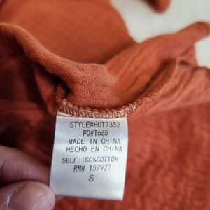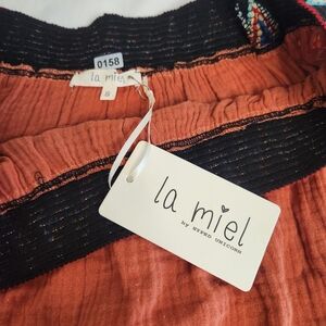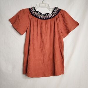 La Miel Women's Top Rusty Orange with Embroidered Neckline Size S Aztec