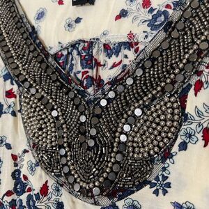Belted Waist Tie With Tassels, Metal Beading At Neckline, Lightweight