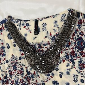 La Moda Tropical Cover Up Caftan Garden Midi Dress Embellishments L / XL