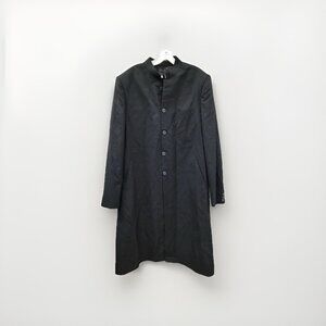 La Mode Vtg Black Mandarin Collar Button Down Gothic Cosplay Jacket w Pockets
