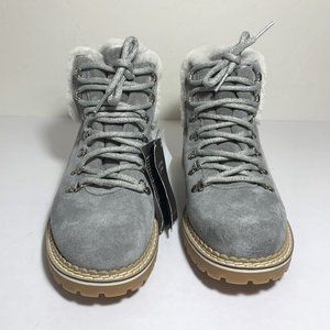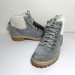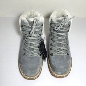 NEW La Montelliana 1965 Civetta Boots Hiker Suede Shearling Lace Up Lug Sole Booties Gray Size 38 US 8