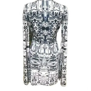 La Pateau Architectural Printed Split Longsleeve Mini Dress Multicolor Size M