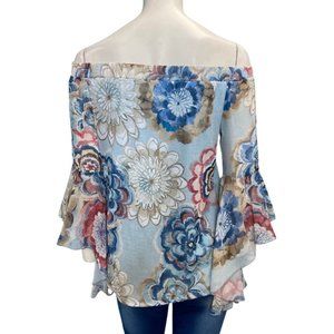 La Pateau Off The Shoulder Long Sleeve Floral Top Blue Size Medium NWT