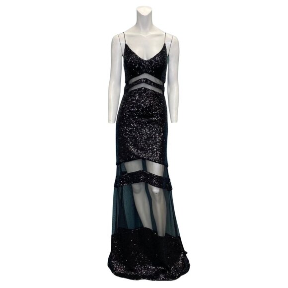 La Pateau Sequin Mesh Cutout Sleeveless Gown Black Size Large NWT