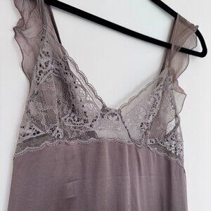 La Perla 100% Silk Lace ashed rose mauve Slip Dress Size 4 small