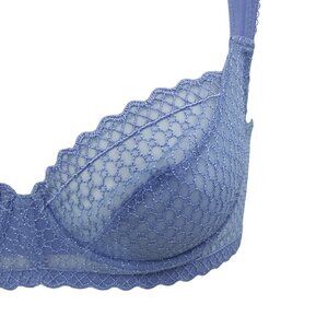 La Perla Bra High Waisted Underwear Underwire Size 34B Blue Lace Set Pinup Sheer