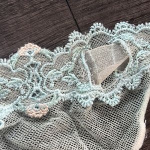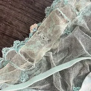 Elegant La Perla lace G-string thong crafted with delicate sheer mesh and intricate floral lace detailing. Features a soft mint green hue with a romantic, feminine finish. Lightweight and refined — a true luxury lingerie piece.