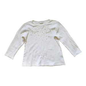 La Perla Kids White Long Sleeve Tee Rhinestone Bow Top Girls Size 4