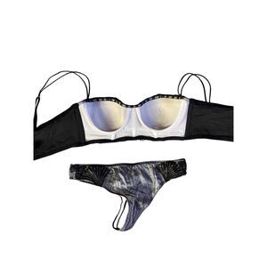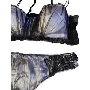 La Perla Limited Edition Bra Thong Set Black Mesh Overlay 32 Petite