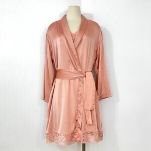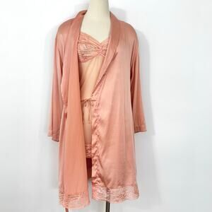 La Perla Malizia Silk Matching Set Slip Chemise Dress and Robe Light Peach L/XL