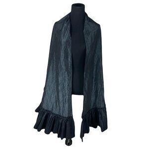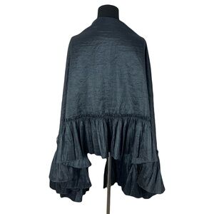 Chic black robe with elegant ruffles. Ideal for a sophisticated look.