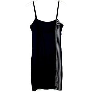 La Perla Vintage Mini Slip Dress Black White Stripe Pintuck Side Slit Spaghetti