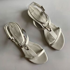 La Perla Leather T-Strap Chain Sandal in White Size 40