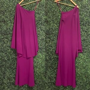 Purple jersey (72% Polyamid, 28% Elastane). Gown. Sleeveless. One shoulder neckline.