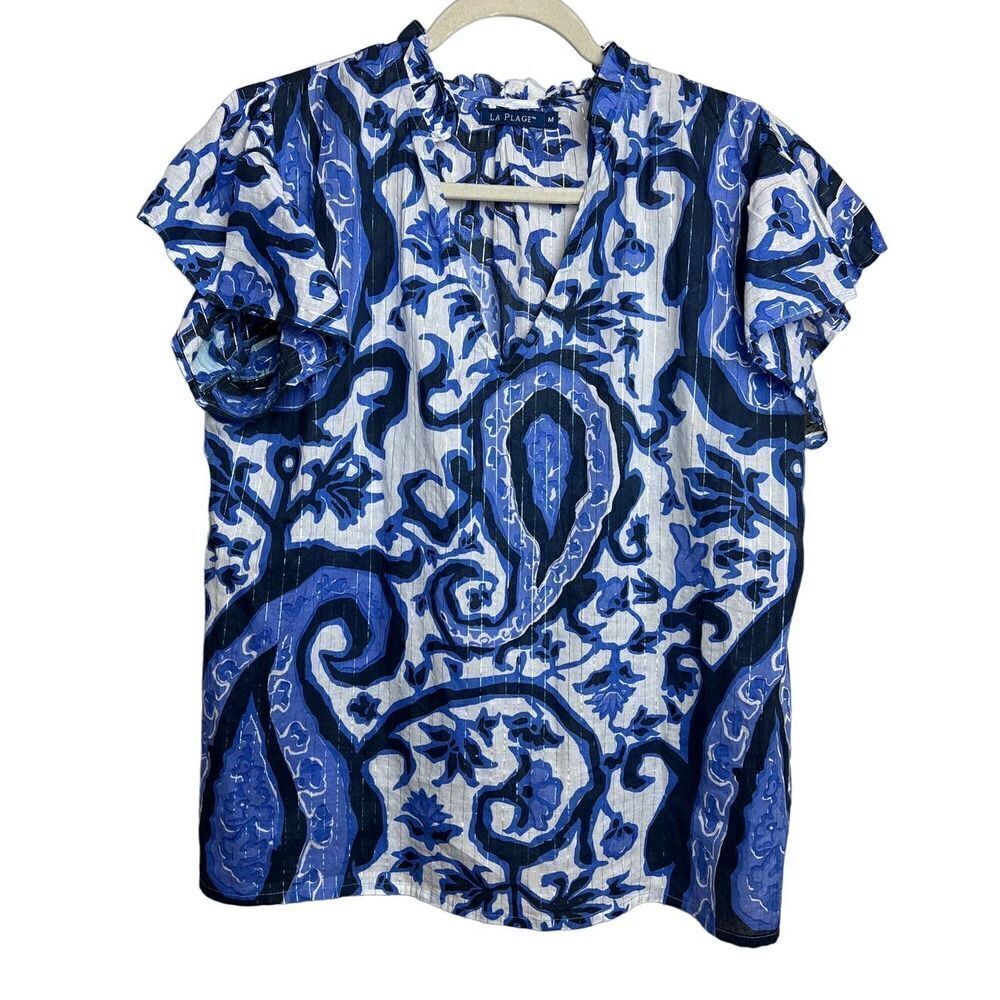 La Plage Blue Ruthie Ruffle Top Sz. M Retail $118 Great condition! Measurements Taken: 25"L,22"p/p